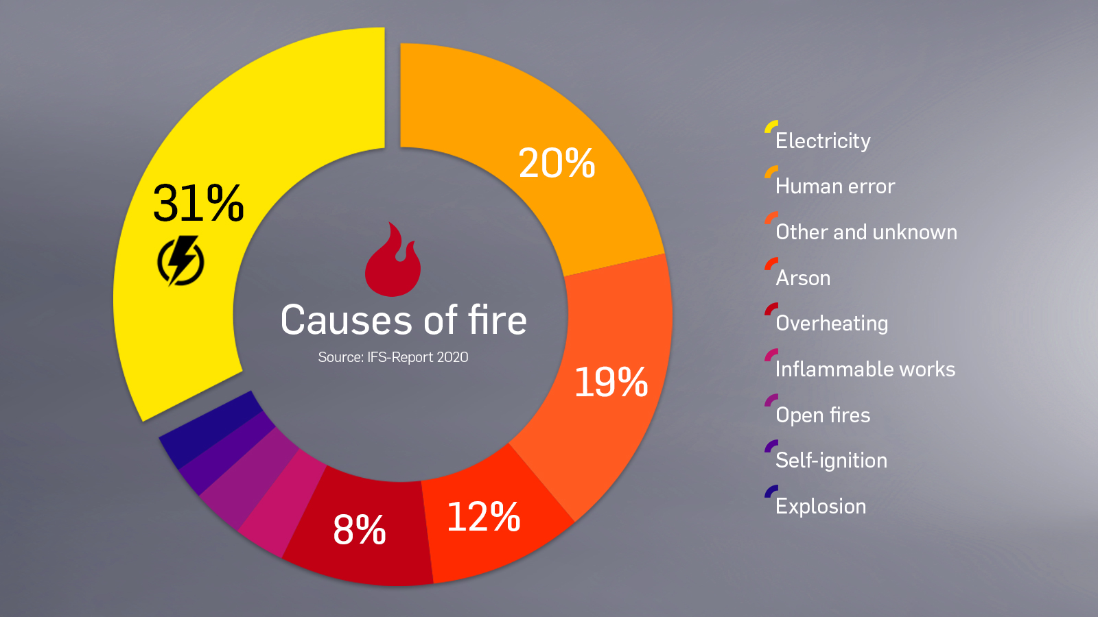 Dabei entstehen über 30% der Brände auf Grund von Elektriziät!