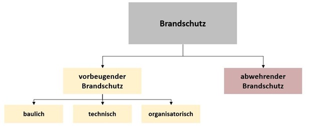 Der vorbeugende Brandschutz beinhaltet alle Maßnahmen, welche direkt bei der Entstehung und Ausbreitung eines Brandes durch bauliche, anlagentechnische sowie organisatorische Konzepte entgegenwirken und die Brandauswirkung minimalisiert. Der abwehrende Brandschutz inkludiert alle Maßnahmen, wenn es brennt. Das heißt das Löschen des Brandes sowie die Verringerung der Brandbegleitschäden.
